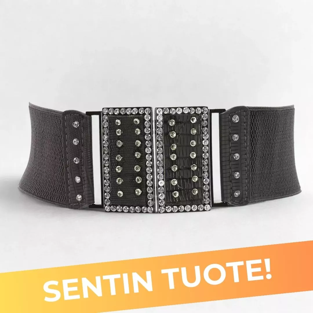 1kpl/tilaus - Stretchvyö strasseilla tummanharmaa