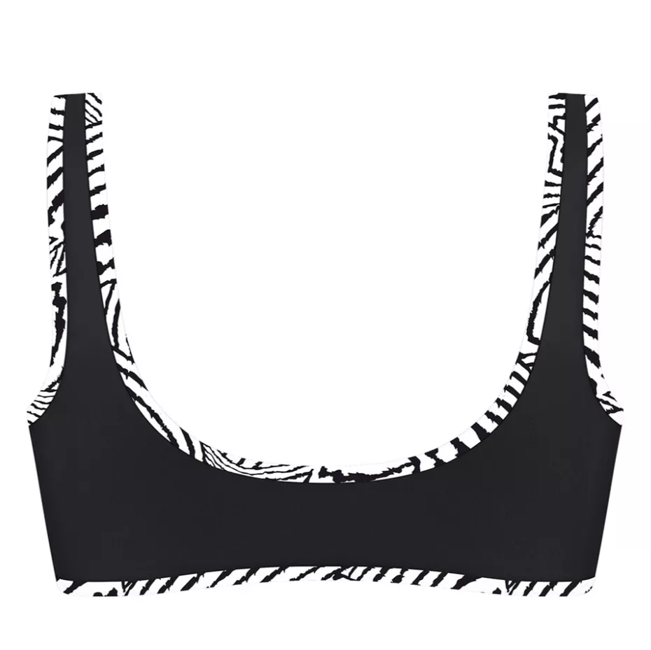 Chlamys Varian kokonaanvuoratut mustat bikiniliivit seeprakuvioisilla tehosteilla.