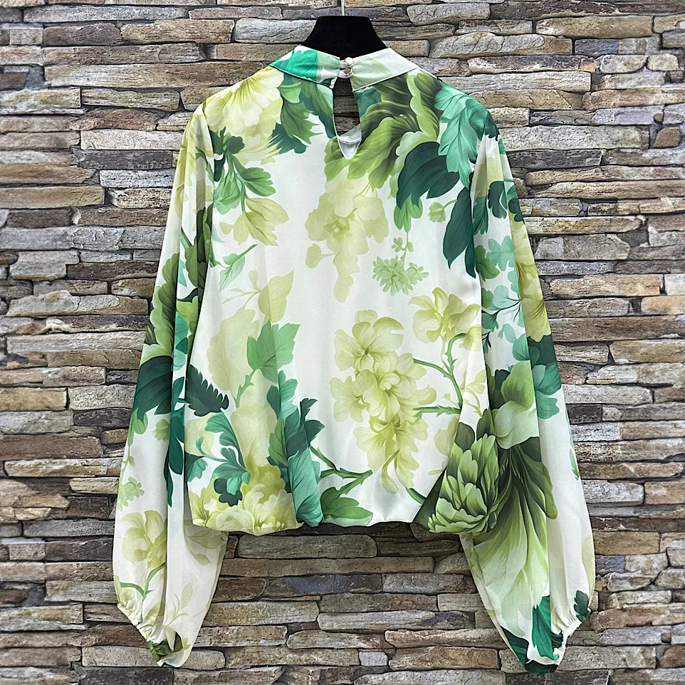 Italiassa valmistettu pitkähihainen sifonkipaita. Lyhyt malli.