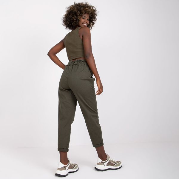 Vyötäröllä joustava kuminauha kiinniommeltu vyösomiste.