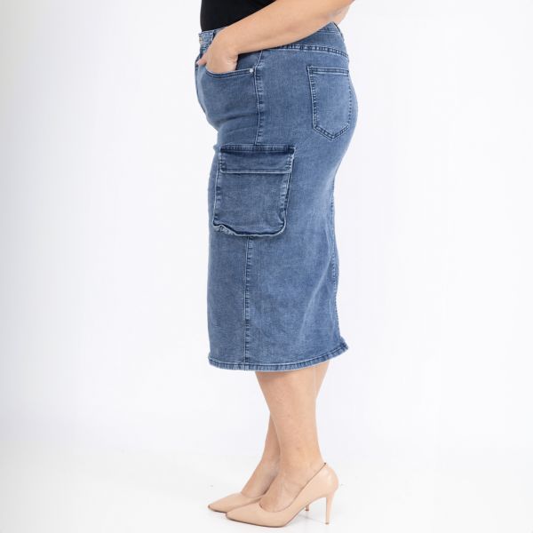 Todella hyvin joustava stretchfarkkuhame. Etuosassa halkio. Normaali vyötärökorkeus.