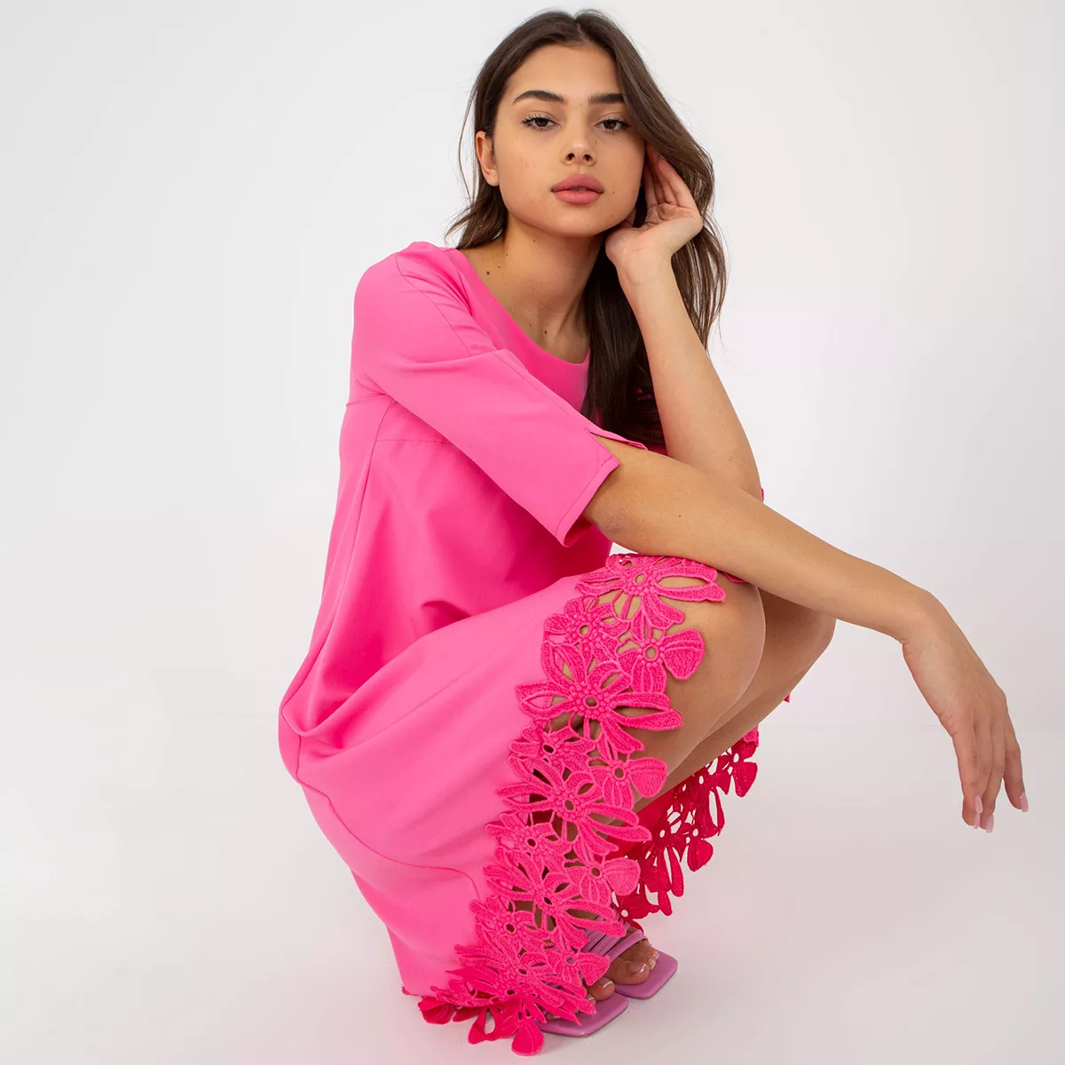 Ihastuttava mekko puolipitkillä hihoilla. Helmassa pitsisomiste.