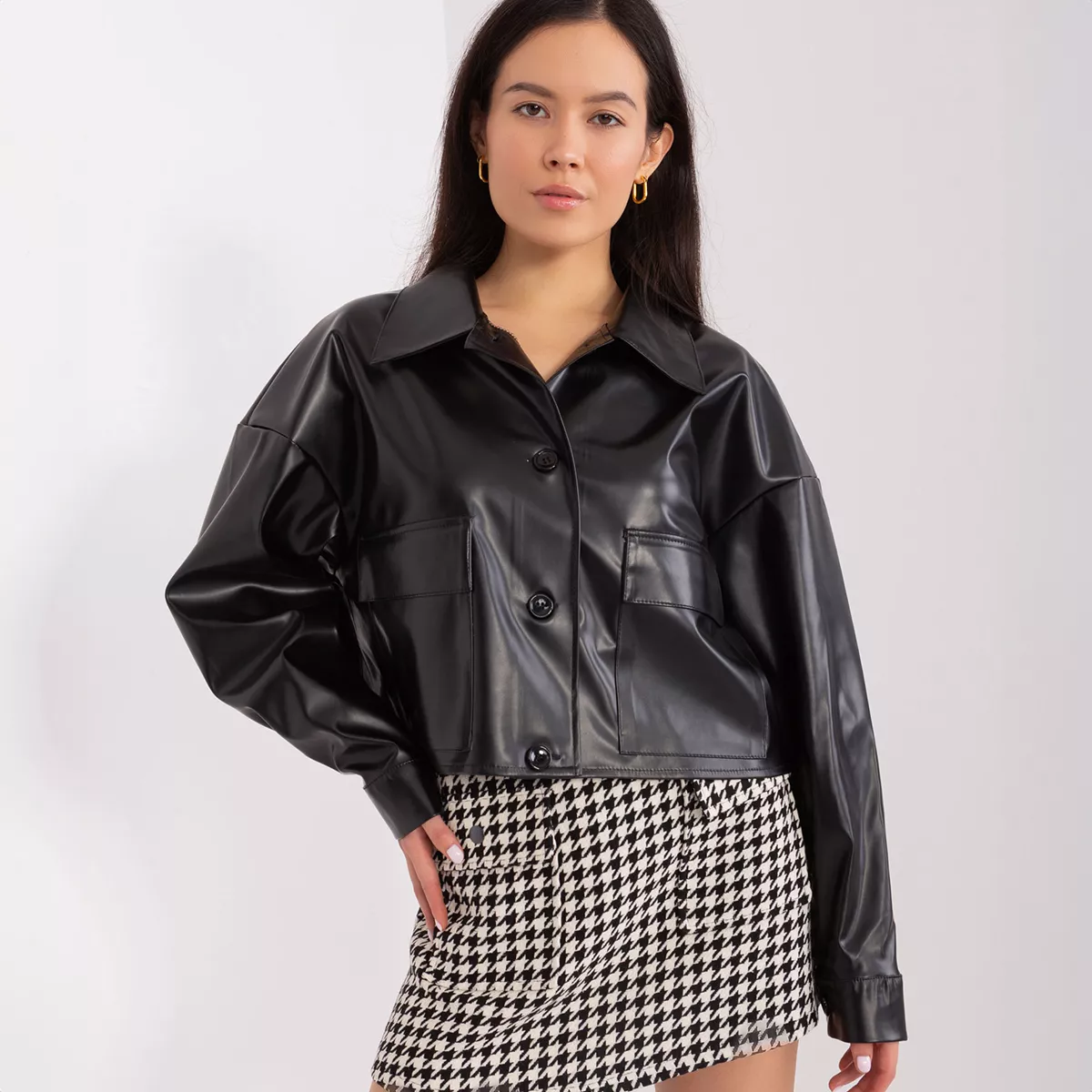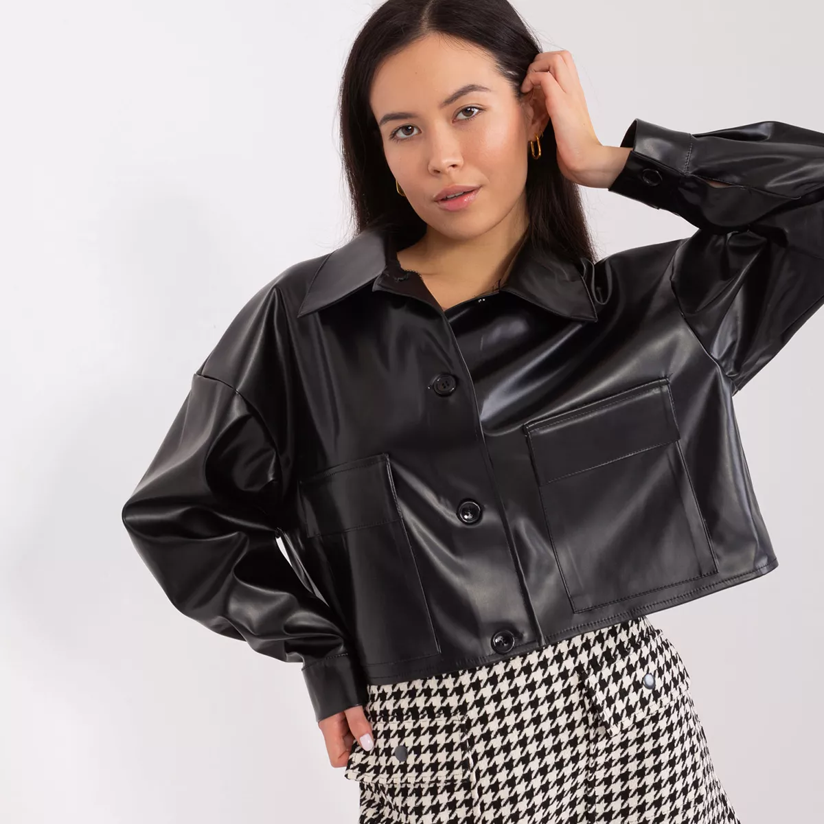 Näyttävä keinonahkainen vuoraamaton takki. Lyhyt malli.