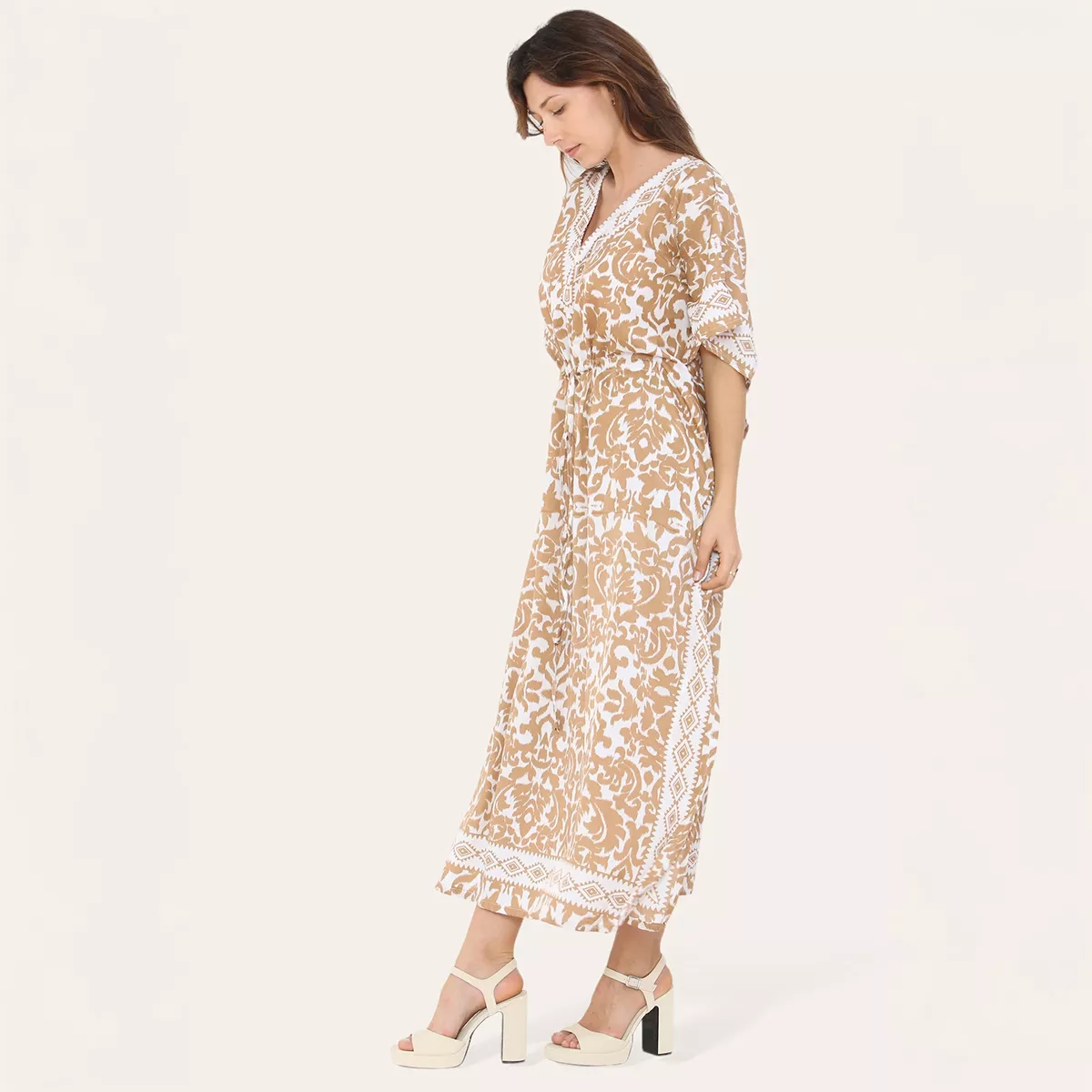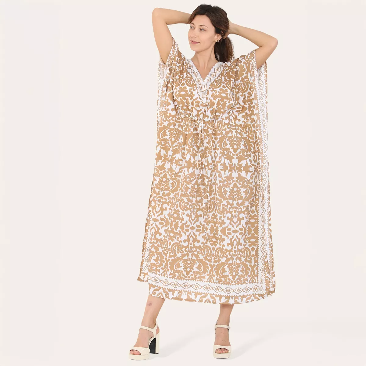 Intiassa valmistettu vilpoisa kuvioitu viskoosikaftaani.