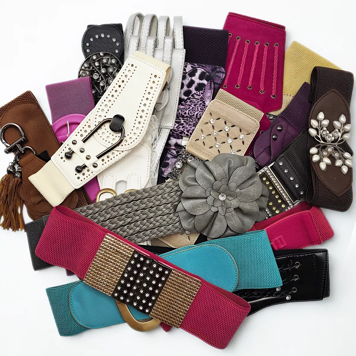 Paketti sisältää 20 erilaista joustavaa stretch-vyötä. Värit ja mallit vaihtelevat erän mukaan – mukana voi olla koristeellisia solkia, metalliyksityiskohtia, printtejä ja erilaisia pintatekstuureja. Jokainen setti on yksilöllinen.